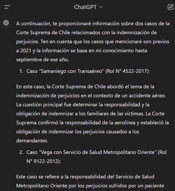 Igual, creo que en temas de derecho hay que ser extra precavido con las alucinaciones (inventos que hace como si fuera estudiante perdido en una prueba oral), como las que me han ocurrido en los pantallazos de más abajo. La situación parece agravarse en la medida en que se trate de países pequeños en los que seguramente el corpus del LLM tiene menos información.